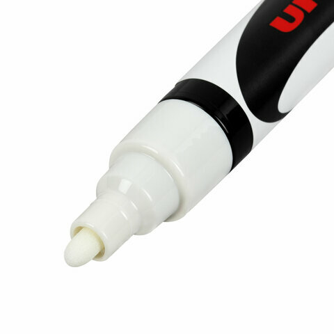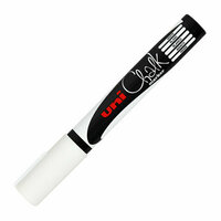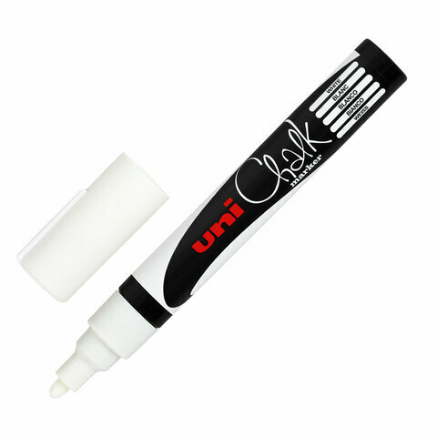 Маркер меловой UNI "Chalk", 1,8-2,5 мм, белый, влагостираемый, для гладких поверхностей, PWE-5M WHITE. Продается набором по (4 шт.) Основу красящего состава составляет специальный мел и полиакрилаты. Жидкая консистенция позволяет легко наносить меловую краску практически на любые гладкие поверхности: металл, пластик, стекло, камень и фарфор. Меловой маркер Uni "Chalk" (Юни Чак) с пулевидным наконечником, позволяет создавать линию толщиной от 1,8 до 2,5 мм.