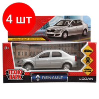 Купить Комплект 4 шт, Машина игрушечная Технопарк «Renault Logan», RENAULT, металл, 12см, серебристый, с подвижными элементами с доставкой по всей России.