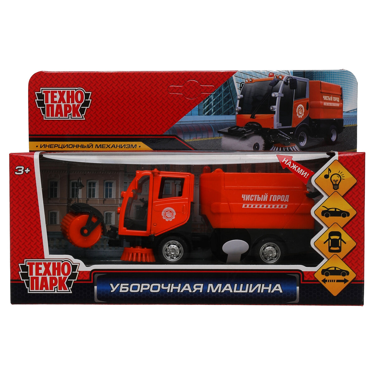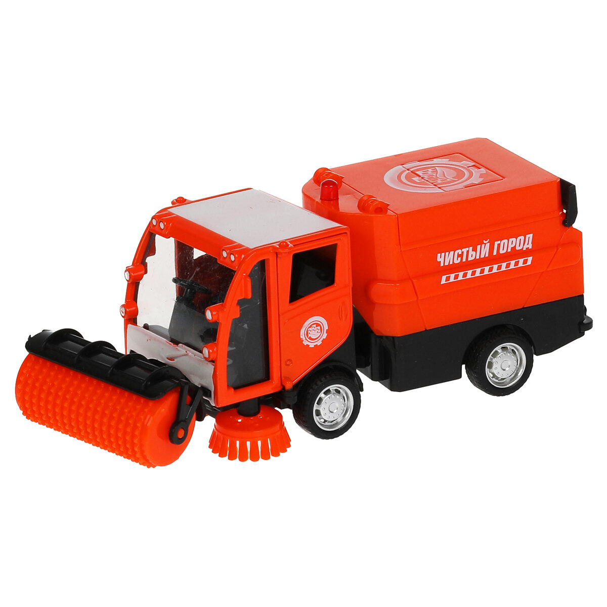 Купить Комплект 4 шт, Машина игрушечная Технопарк «Уборочная машина», металл, 15.5см, свет-звук, оранжевая, с подвижными элементами с доставкой по всей России.