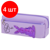 Купить Комплект 4 шт, Пенал-косметичка юнландия, 2 отделения, мягкий, «Зайка», фиолетовый, 20х7х9 см, 228989 с доставкой по всей России.