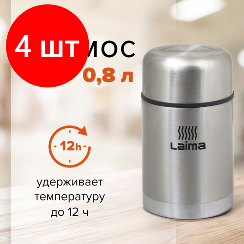 Купить Комплект 4 шт, Термос LAIMA универсальный с широким горлом, 0.8 л, нержавеющая сталь, 601408 с доставкой по всей России.