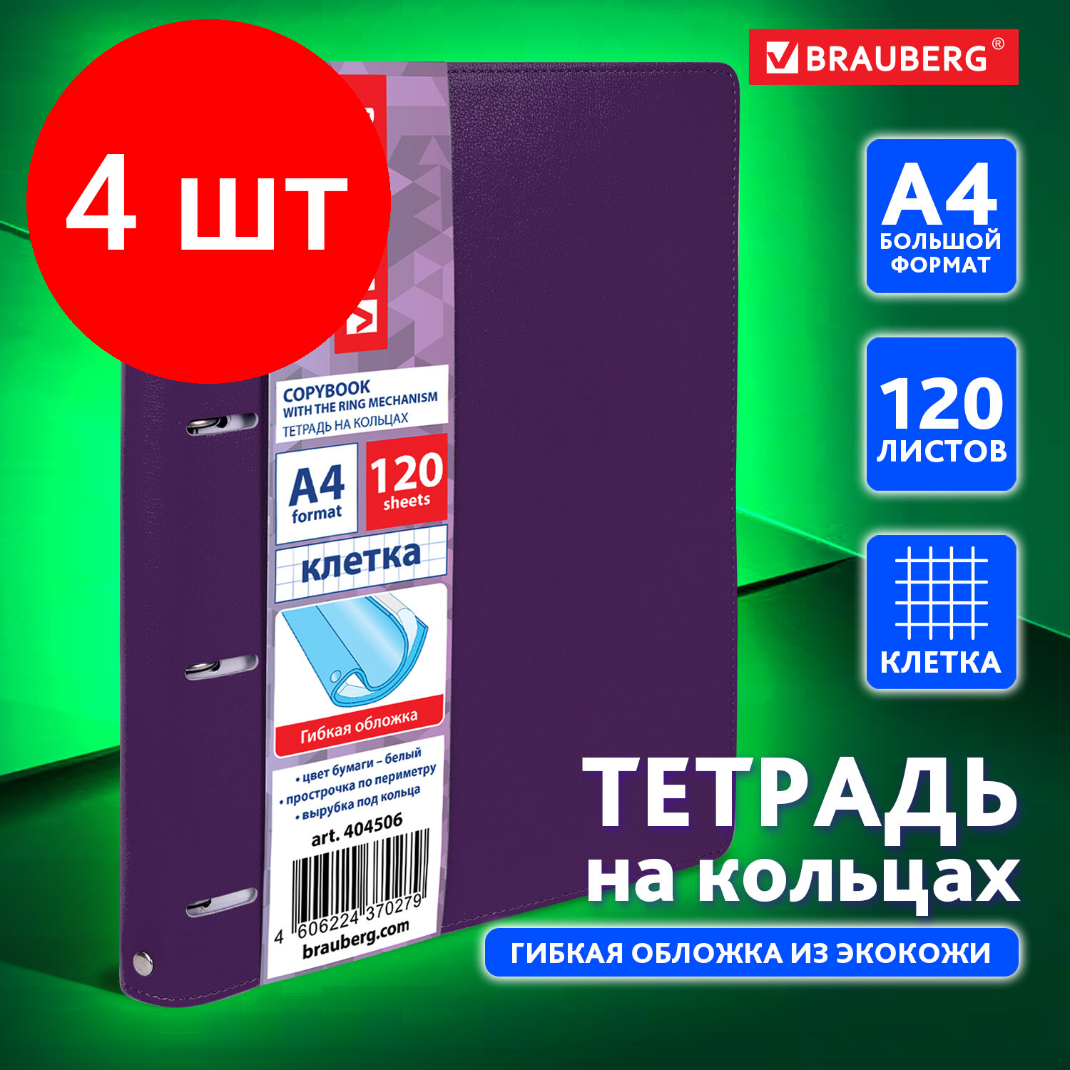 Купить Комплект 4 шт, Тетрадь на кольцах большая А4 (240х310 мм), 120 листов, под кожу, клетка, BRAUBERG «Joy», фиолетовый/светло-фиолетовый, 404506 с доставкой по всей России. Комплект 4 шт, Тетрадь на кольцах большая А4 (240х310 мм), 120 листов, под кожу, клетка, BRAUBERG «Joy», фиолетовый/светло-фиолетовый, 404506: сравнение цен, характеристики, фото, актуальное наличие и цены.