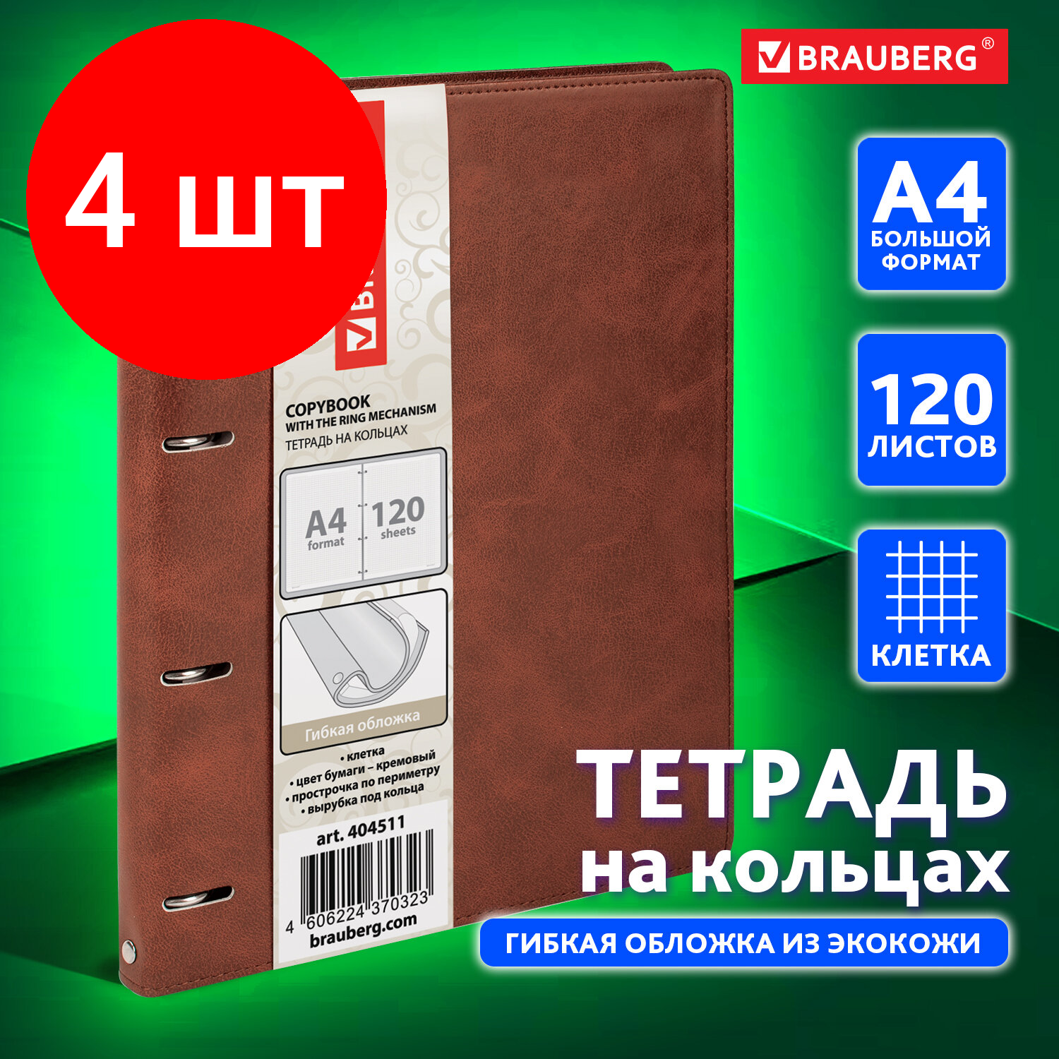 Купить Комплект 4 шт, Тетрадь на кольцах большая А4 (240х310 мм), 120 листов, под кожу, клетка, BRAUBERG «Main», коричневый, 404511 с доставкой по всей России. Комплект 4 шт, Тетрадь на кольцах большая А4 (240х310 мм), 120 листов, под кожу, клетка, BRAUBERG «Main», коричневый, 404511: сравнение цен, характеристики, фото, актуальное наличие и цены.