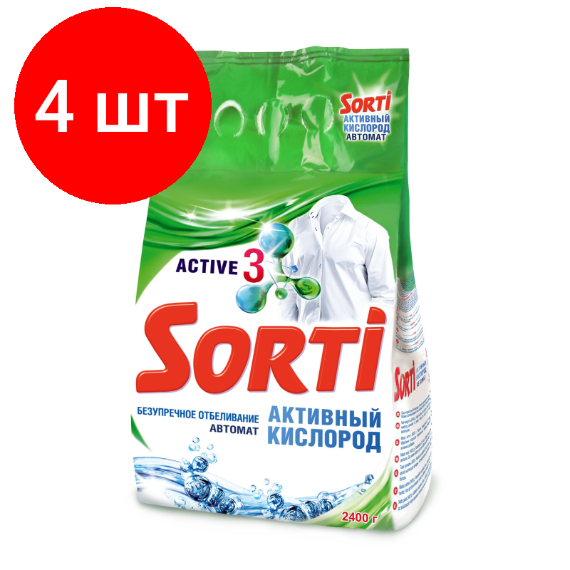 Комплект 4 штук, Порошок стиральный Sorti автомат Активный кислород для белого белья 2.4 кг: сравнение цен, характеристики, фото, актуальное наличие и цены.