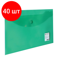 Купить Комплект 40 шт, Папка-конверт с кнопкой малого формата (240х190 мм), А5, прозрачная, зеленая, 0.18 мм, BRAUBERG, 224025 с доставкой по всей России.