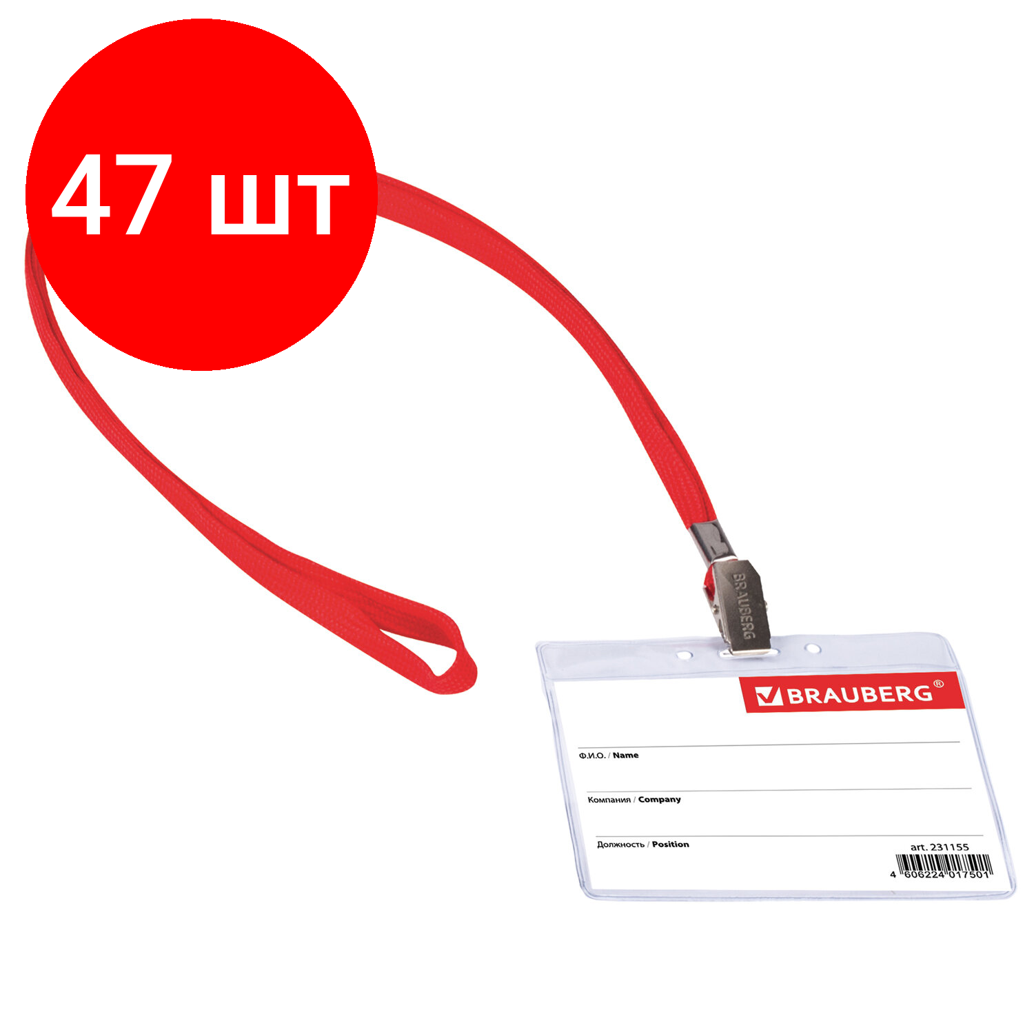 Комплект 47 шт, Бейдж горизонтальный (60х90 мм), на красной ленте 45 см, BRAUBERG, 231155: сравнение цен, характеристики, фото, актуальное наличие и цены.