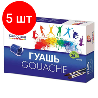 Внимание! Товар продается комплектом:[Гуашь Луч Классика 24 цв. 570 г. 20 мл, 28С 1681-08] X 5 шт.