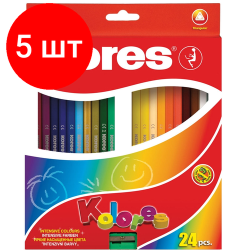 Внимание! Товар продается комплектом:[Карандаши цветные 24цв 3-гран, точилка Kores 93324.01] X 5 шт. Карандаши цветные, заточенные, для рисования на бумаге, изготовлены из качественной древесины, ударопрочные и легко затачиваются, не оставляя заусенцев. Форма карандаша трехгранная, она позволит малышу легко научиться правильно располагать пальцы, держать карандаш 'щепоткой', а не в кулаке. Так же на корпусе имеется поле для подписи ФИО, это отлично подойдет для начальных класов. Рекомендуемый возраст от 3-х лет. Длина корпуса карандаша 175 мм. Диаметр грифеля 2.9 мм. Поставляется в картонной упаковке с европодвесом, размер 225x175x7 мм. В комплекте идет точилка.