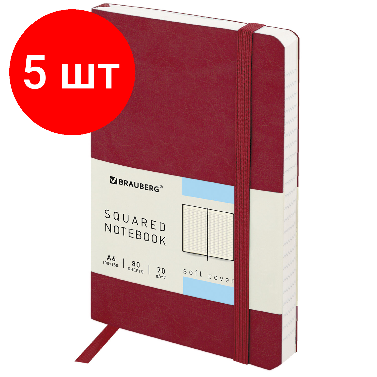 Комплект 5 шт, Блокнот в клетку с резинкой малый формат А6 (100×150 мм), 80 л, под кожу красный BRAUBERG «Metropolis Ultra», 111026: сравнение цен, характеристики, фото, актуальное наличие и цены.