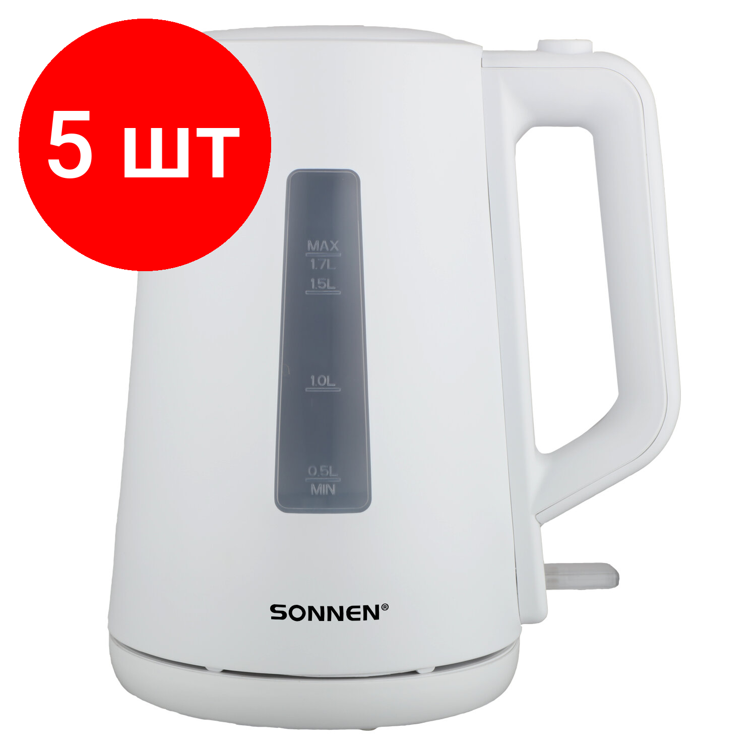 Купить Комплект 5 шт, Чайник электрический SONNEN KT-1303, 1.7 л, 2200 Вт, пластик, белый, 456374 с доставкой по всей России.