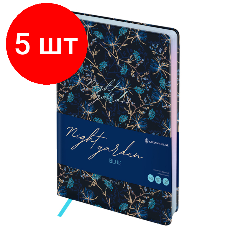 Комплект 5 шт, Ежедневник недатированный, А5, 136л, кожзам, Greenwich Line «Night garden. Blue», тон. блок: сравнение цен, характеристики, фото, актуальное наличие и цены.