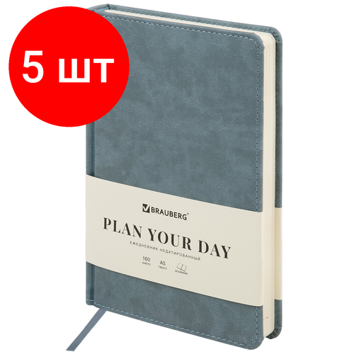 Внимание! Товар продается комплектом:[Ежедневник недатированный А5 138х213мм BRAUBERG Status, 136л, под кожу, серо-голубой, 113365] X 5 шт. Недатированный ежедневник BRAUBERG "Status" с классической обложкой предназначен для энергичных людей, любящих нестандартные подходы к решению поставленных задач.