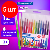Купить Комплект 5 шт, Фломастеры BRAUBERG «PREMIUM», 12 цветов, классические, вентилируемый колпачок, ПВХ-упаковка с европодвесом, 151934 с доставкой по всей России.