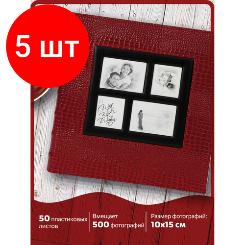 Купить Комплект 5 шт, Фотоальбом BRAUBERG на 500 фотографий 10х15 см, обложка под кожу крокодила, рамка для фото, красный, 390714 с доставкой по всей России.