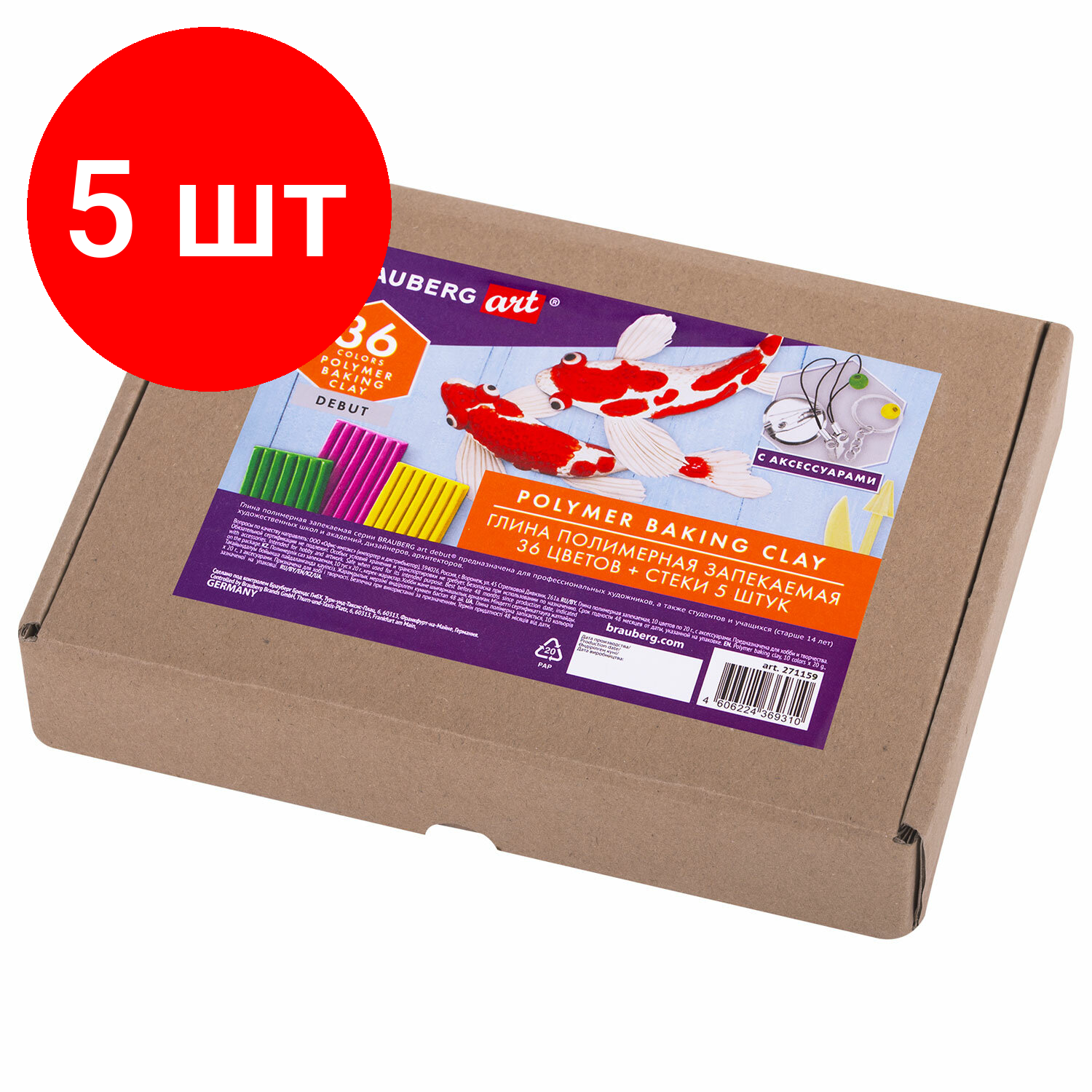 Комплект 5 шт, Глина полимерная запекаемая, набор 36 цветов по 20 г, с аксессуарами, в гофрокоробе, BRAUBERG, 271159: сравнение цен, характеристики, фото, актуальное наличие и цены.