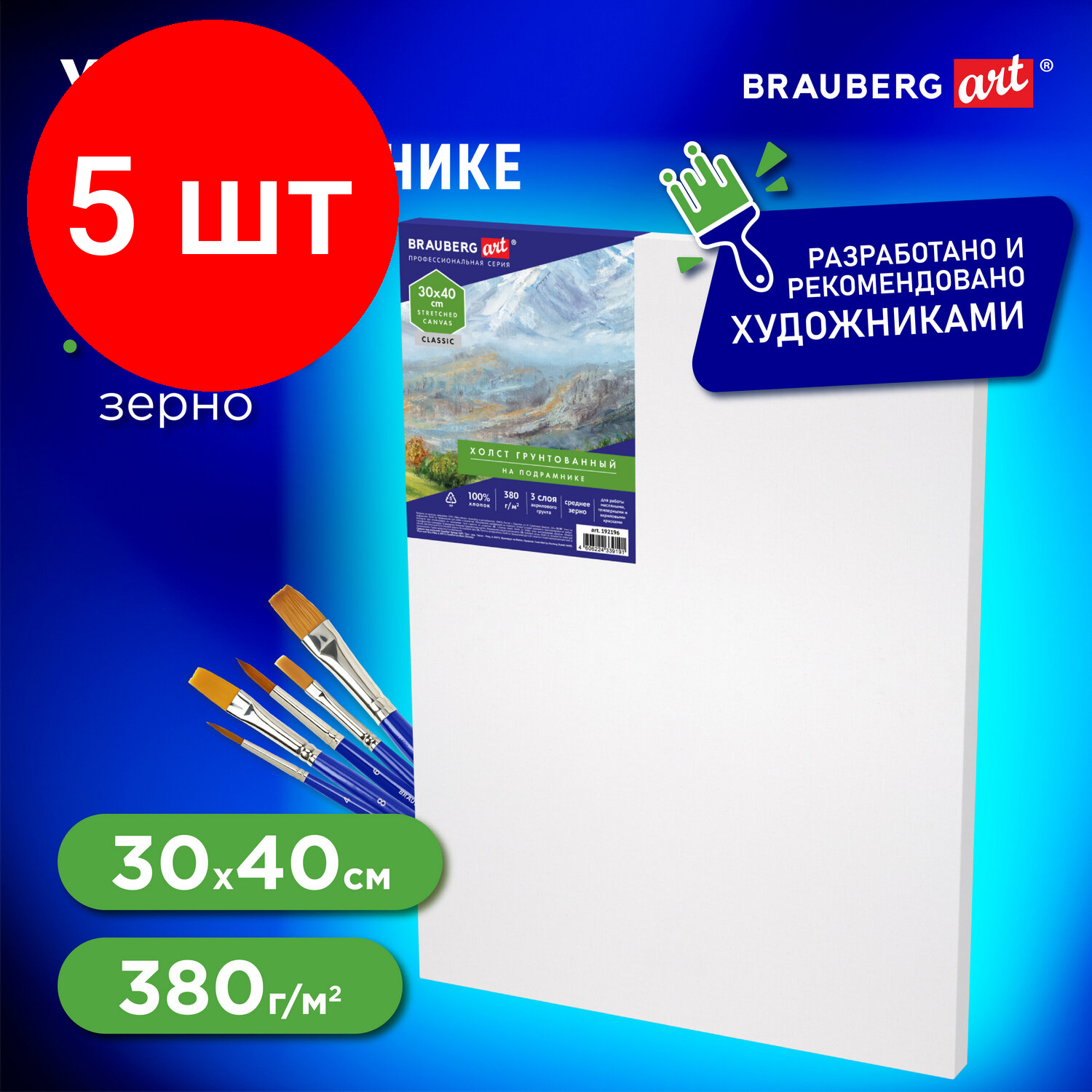 Купить Комплект 5 шт, Холст на подрамнике 30х40 см, 380 г/м2, грунтованный, 100% хлопок, BRAUBERG ART, 192196 с доставкой по всей России.