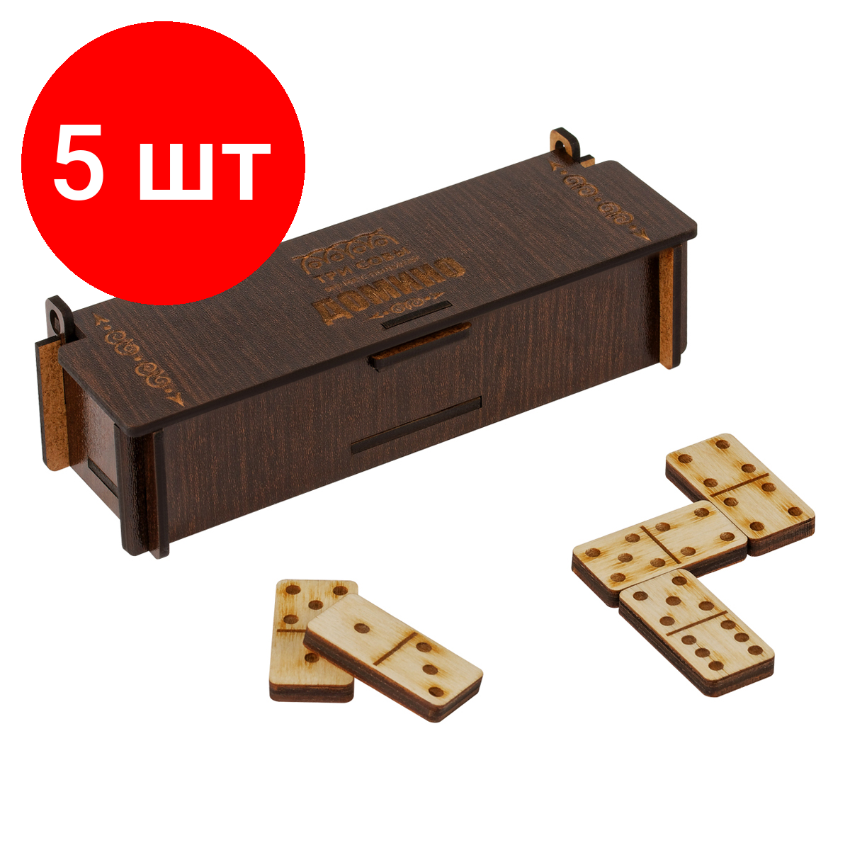 Комплект 5 шт, Игра настольная Домино, ТРИ совы, фанера, шкатулка из ХДФ