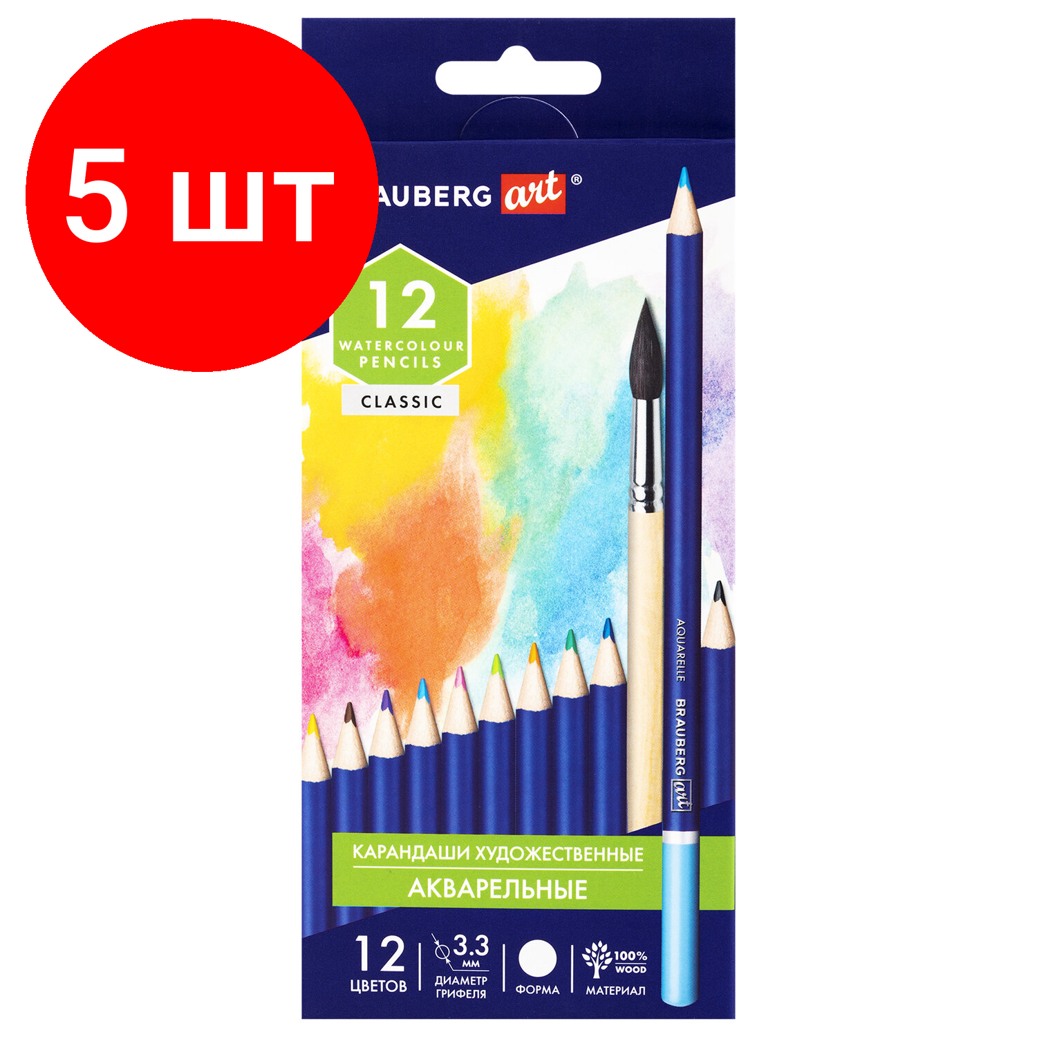 Купить Комплект 5 шт, Карандаши художественные цветные акварельные BRAUBERG ART CLASSIC, 12 цветов, грифель 3.3 мм, 181529 с доставкой по всей России.