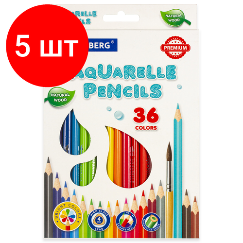 Внимание! Товар продается комплектом:[Карандаши цветные акварельные BRAUBERG PREMIUM AQUARELLE, 36 цветов, грифель мягкий 4 мм, 181674] X 5 шт.