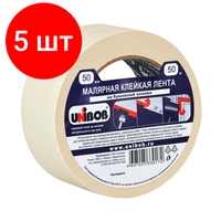 Комплект 5 шт, Клейкая лента малярная креппированная 50 мм х 50 м (реальная длина!), профессиональная, UNIBOB 28139: сравнение цен, характеристики, фото, актуальное наличие и цены.