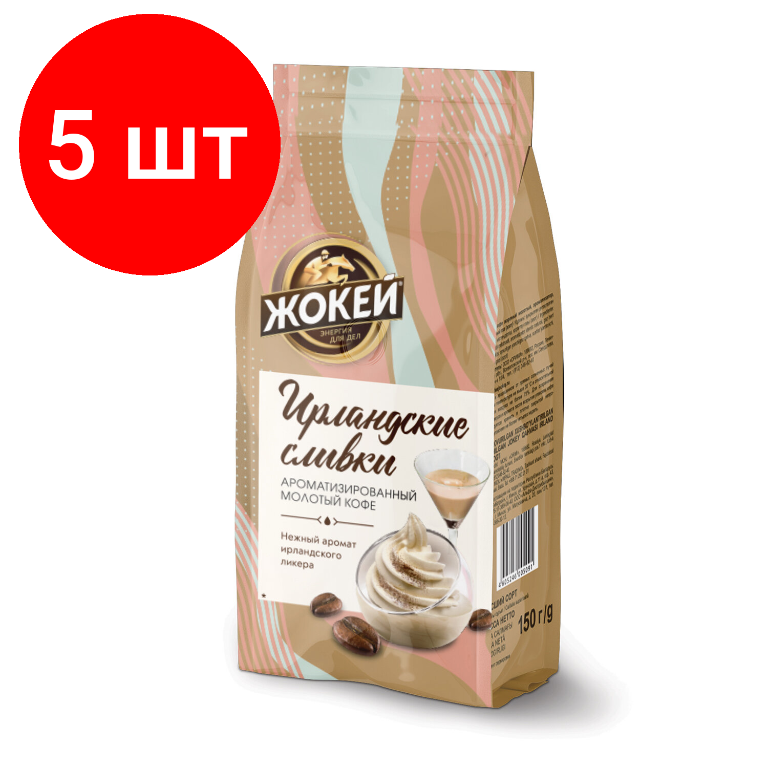 Комплект 5 шт, Кофе молотый жокей «Ирландские сливки», натуральный, 150 г, вакуумная упаковка, 0509-20: сравнение цен, характеристики, фото, актуальное наличие и цены.