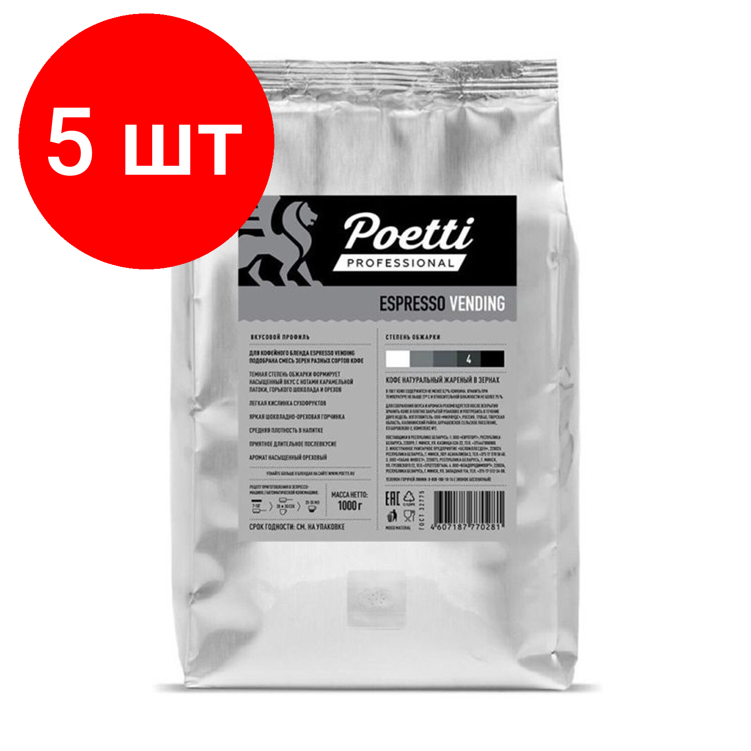 Купить Комплект 5 шт, Кофе в зернах POETTI «Espresso Vending» 1 кг, 18305 с доставкой по всей России. Комплект 5 шт, Кофе в зернах POETTI «Espresso Vending» 1 кг, 18305: сравнение цен, характеристики, фото, актуальное наличие и цены.