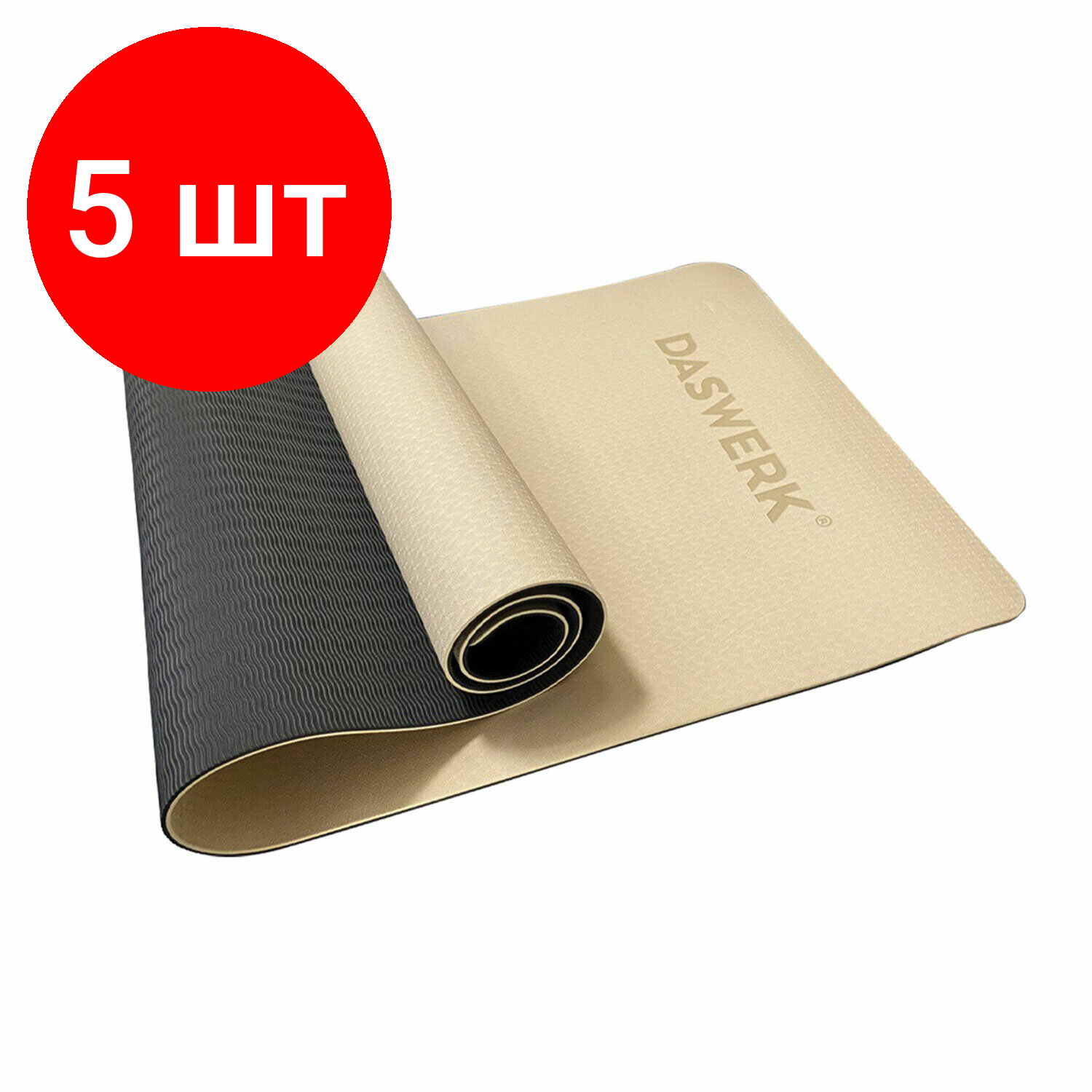 Внимание! Товар продается комплектом:[Коврик для йоги и фитнеса спортивный двухцветный, ТПЭ, 183x61x0.6 см, бежевый/чёрный, DASWERK, 680030] X 5 шт.