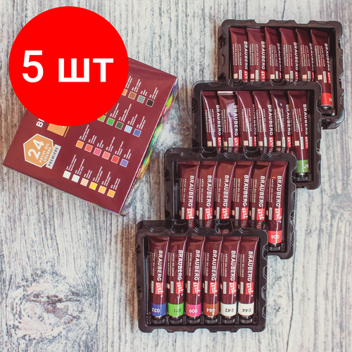 Купить Комплект 5 шт, Краски масляные художественные BRAUBERG ART PREMIERE, 24 цв по 22 мл, проф. серия, в тубах, 191460 с доставкой по всей России.