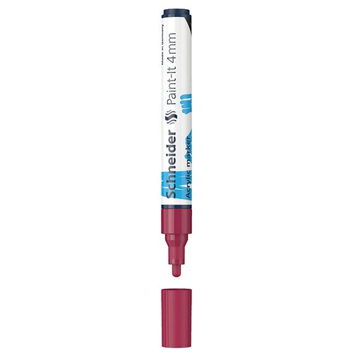 Schneider Paint-It 320 - акриловый маркер для творчества и хобби. Толщина линии – 4 мм, форма наконечника – пулевидная, цвет чернил - бордовый. Акриловые чернила на водной основе быстро сохнут, обеспечивают интенсивность цвета, высокие укрывные свойства и стойкость после высыхания. Не содержат ксилол и толуол. Подходит для работ на различных поверхностях: бумага, дерево, камень, гипс и т. д. Перед использованием маркер необходимо встряхнуть для смешивания и равномерной подачи чернил. • Цвет чернил: бордовый; • Толщина линии письма: 4 мм; • Страна производства: Германия