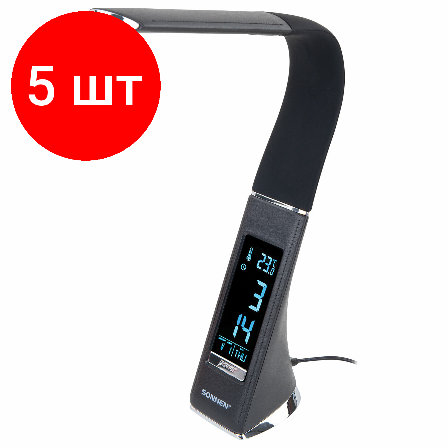 Комплект 5 шт, Настольная лампа-светильник SONNEN SM-01B на подставке, LCD-экран, светодиодная, 5 Вт, черный, 238232: сравнение цен, характеристики, фото, актуальное наличие и цены.
