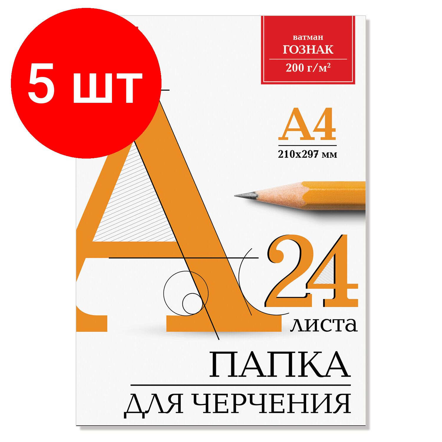 Папка BRAUBERG 129255, комплект 5 шт. Папка для черчения А4, 210х297 мм, 24 л, 200 г/м2, без рамки, ватман гознак КБФ, BRAUBERG, 129255Папка для черчения BRAUBERG содержит набор листов ватмана для выполнения чертежно-графических работ карандашами, тушью и чернилами. Внутренний блок содержит 24 листа производства гознак КБФ плотностью 200 г/м2. Обложка выполнена из импортного мелованного картона плотностью 235 г/м2. Ватман формата А4 (210х297 мм). Формат: А4. Кол-во листов: 24. Плотность бумаги: 200 г/м2. Штамп: нет. Ватман: да. Длина: 210 мм. Ширина: 297 мм. Кол-во дизайнов обложки: 1 Бренд - BRAUBERG. Производитель - Россия. Артикул производителя - 129255. Штрихкод - 4606224198019Характеристики упаковки: Вес: 0,3160 кг. Объем: 0,0005 м3. Размеры: 0,8x30x21,4 см.