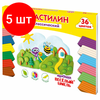 Внимание! Товар продается комплектом:[Пластилин классический юнландия "весёлый шмель", 36 цветов, 720 грамм, со стеком, высшее качество, 106434] X 5 шт.