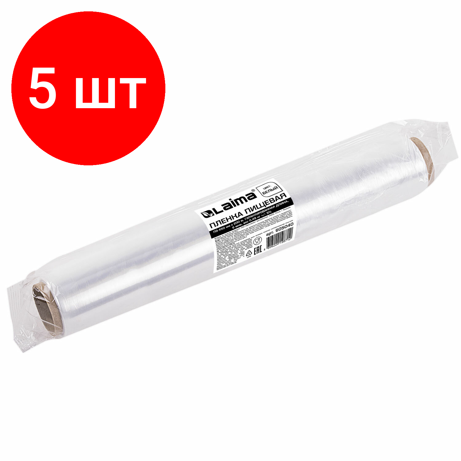 Комплект 5 шт, Пленка пищевая ПЭ 450 мм х 200 м, гарантированная длина, белая, 6 мкм, вес 0.49 кг +- 5%, LAIMA, 605040: сравнение цен, характеристики, фото, актуальное наличие и цены.