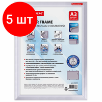 Купить Комплект 5 шт, Рамка настенная для рекламы большого формата (297х420 мм), алюминиевая, прижимные стороны, BRAUBERG, 232204 с доставкой по всей России.