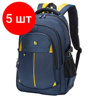 Купить Комплект 5 шт, Рюкзак BRAUBERG TITANIUM универсальный, синий, желтые вставки, 45х28х18см, 270768 с доставкой по всей России.
