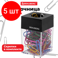 Купить Комплект 5 шт, Скрепочница магнитная BRAUBERG со 100 цветными скрепками 28 мм, прозрачный корпус, 228401 с доставкой по всей России.