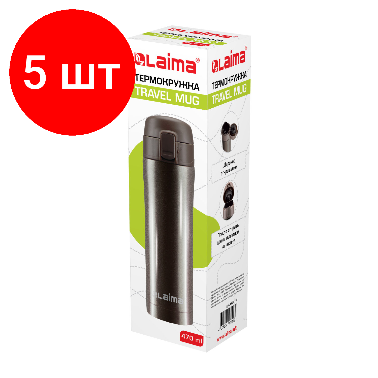 Купить Комплект 5 шт, Термокружка с двойной стальной стенкой 470 мл, цвет шоколадно-коричневый металлик, LAIMA, 608819 с доставкой по всей России. Комплект 5 шт, Термокружка с двойной стальной стенкой 470 мл, цвет шоколадно-коричневый металлик, LAIMA, 608819: сравнение цен, характеристики, фото, актуальное наличие и цены.