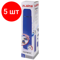 Внимание! Товар продается комплектом:[Термос LAIMA классический с узким горлом, 1 л, нержавеющая сталь, синий, 605124] X 5 шт. Термос классического дизайна с узким горлом изготовлен из высококачественной нержавеющей стали. Оснащен специальной кнопкой, позволяющей наливать напитки, не отвинчивая пробку. Предназначен для хранения горячих и холодных напитков.