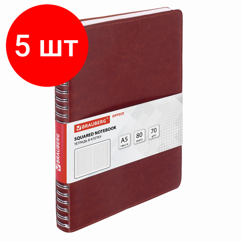 Внимание! Товар продается комплектом:[Тетрадь А5 (148x218 мм), BRAUBERG "Office PRO", гибкая, под кожу, гребень, 80 л, коричневая, 111044] X 5 шт. Универсальная тетрадь BRAUBERG "Office PRO" для записей и заметок в офисе, учебе и повседневной жизни. Обложка из качественного кожзаменителя долго сохраняет привлекательный внешний вид, а прочная пластиковая спираль обеспечивает удобство в использовании.