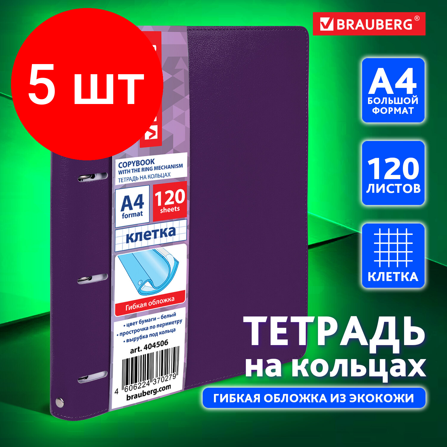 Комплект 5 шт, Тетрадь на кольцах большая А4 (240х310 мм), 120 листов, под кожу, клетка, BRAUBERG «Joy», фиолетовый/светло-фиолетовый, 404506: сравнение цен, характеристики, фото, актуальное наличие и цены.