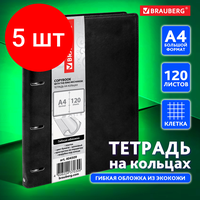Купить Комплект 5 шт, Тетрадь на кольцах большая А4 (240х310 мм), 120 листов, под кожу, клетка, BRAUBERG «Main», черный, 404509 с доставкой по всей России.
