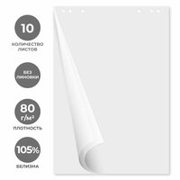 Блок бумаги для флипчарта, белый. Цвет - белый, 10 листов в склейке, размер блока 675*980мм, бумага 80гр, 6 стандартных отверстий. Блоки упакованы по 1 штуке в отдельный короб.