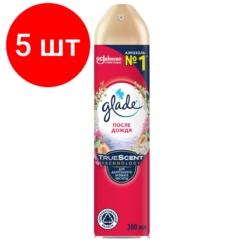 Комплект 5 штук, Освежитель воздуха GLADE После дождя 300мл: сравнение цен, характеристики, фото, актуальное наличие и цены.