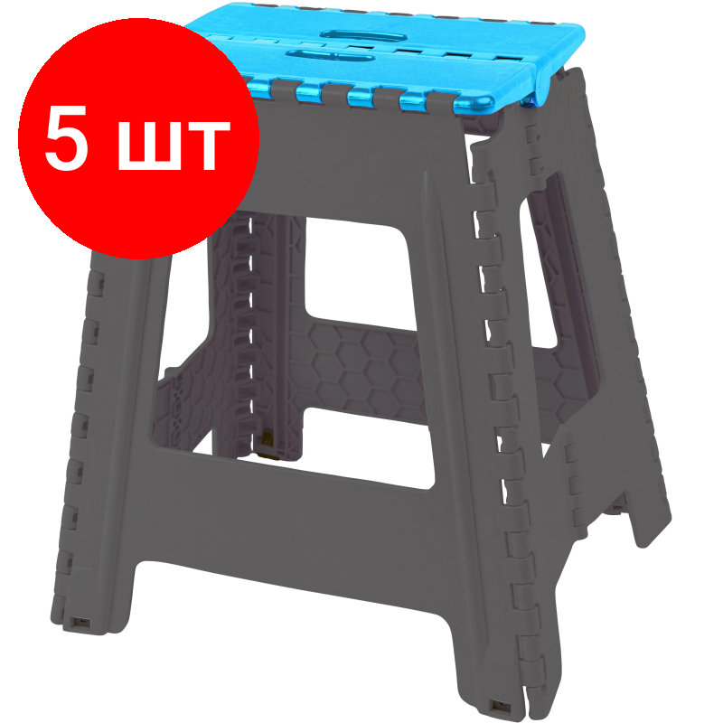 Купить Комплект 5 штук, Стремянка -табурет пластик большая складная Color-X серо-голубая с доставкой по всей России.