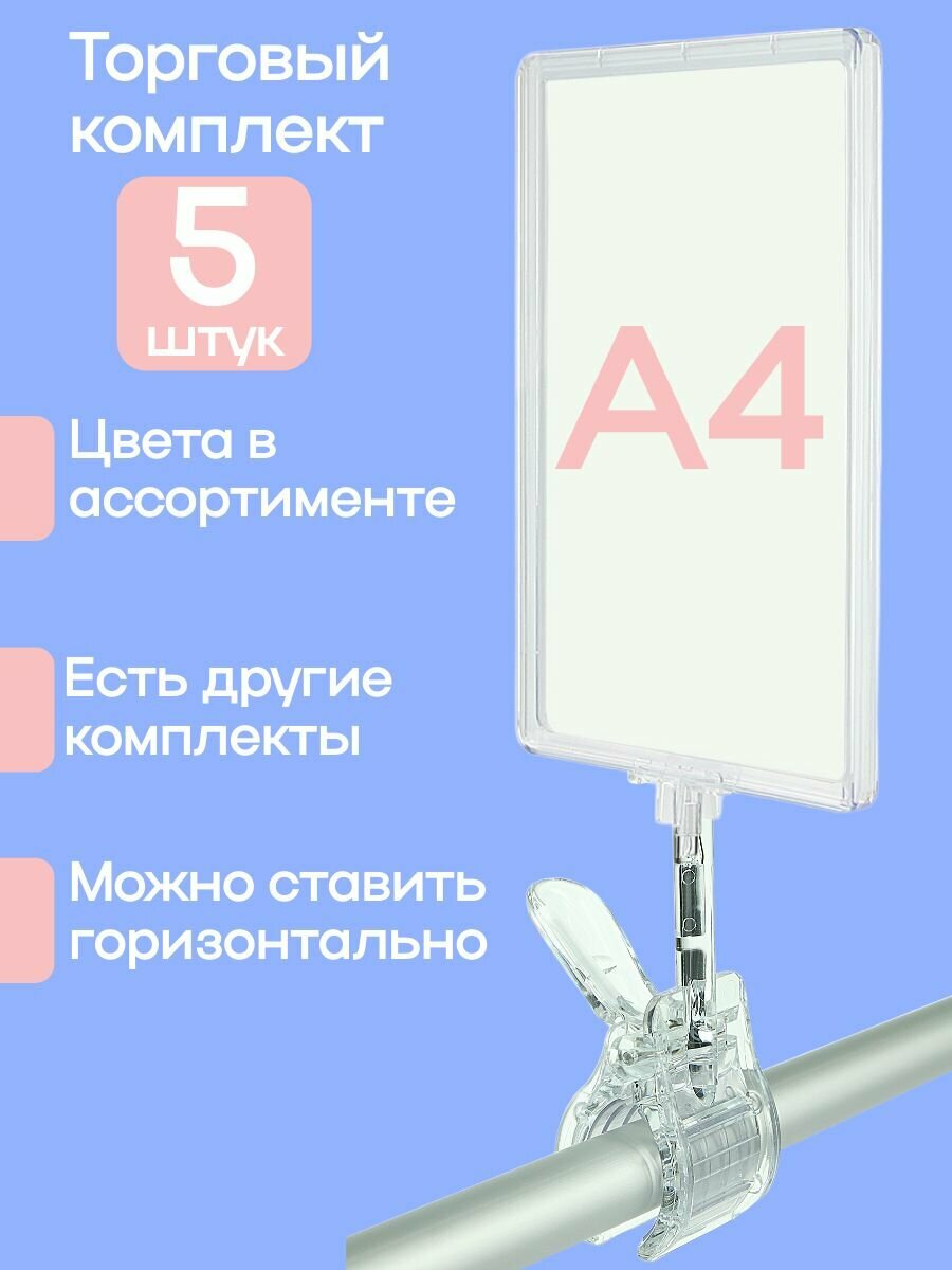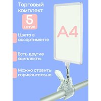 Комплект 5 штук ценникодержатель А4 на большой прищепке крепление на трубы, корзины, торговое оборудование: сравнение цен, характеристики, фото, актуальное наличие и цены.