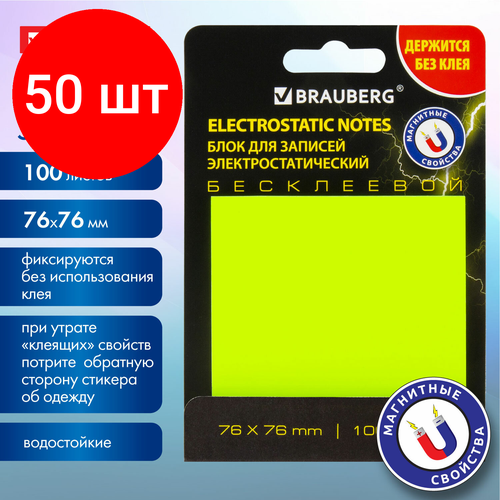 Комплект 50 шт, Блок самоклеящийся (стикеры) бесклеевые электростатические BRAUBERG 76х76 мм, 100 листов, желтые, 115210: сравнение цен, характеристики, фото, актуальное наличие и цены.
