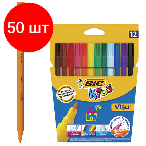 Купить Комплект 50 шт, Фломастеры BIC «Kids Visa», 12 цветов, суперсмываемые, вентилируемый колпачок, европодвес, 889695, 888695 с доставкой по всей России.