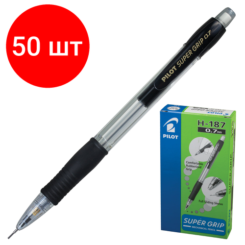 Комплект 50 шт, Карандаш механический 0.7 мм, PILOT H-187 «Super Grip», ластик, резиновый грип, корпус черный, H-187-SL, Н-187: сравнение цен, характеристики, фото, актуальное наличие и цены.