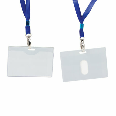 Купить Комплект 50 шт, Лента для бейджей, 45 см, металлический карабин, синяя, BRAUBERG, 235737 с доставкой по всей России.