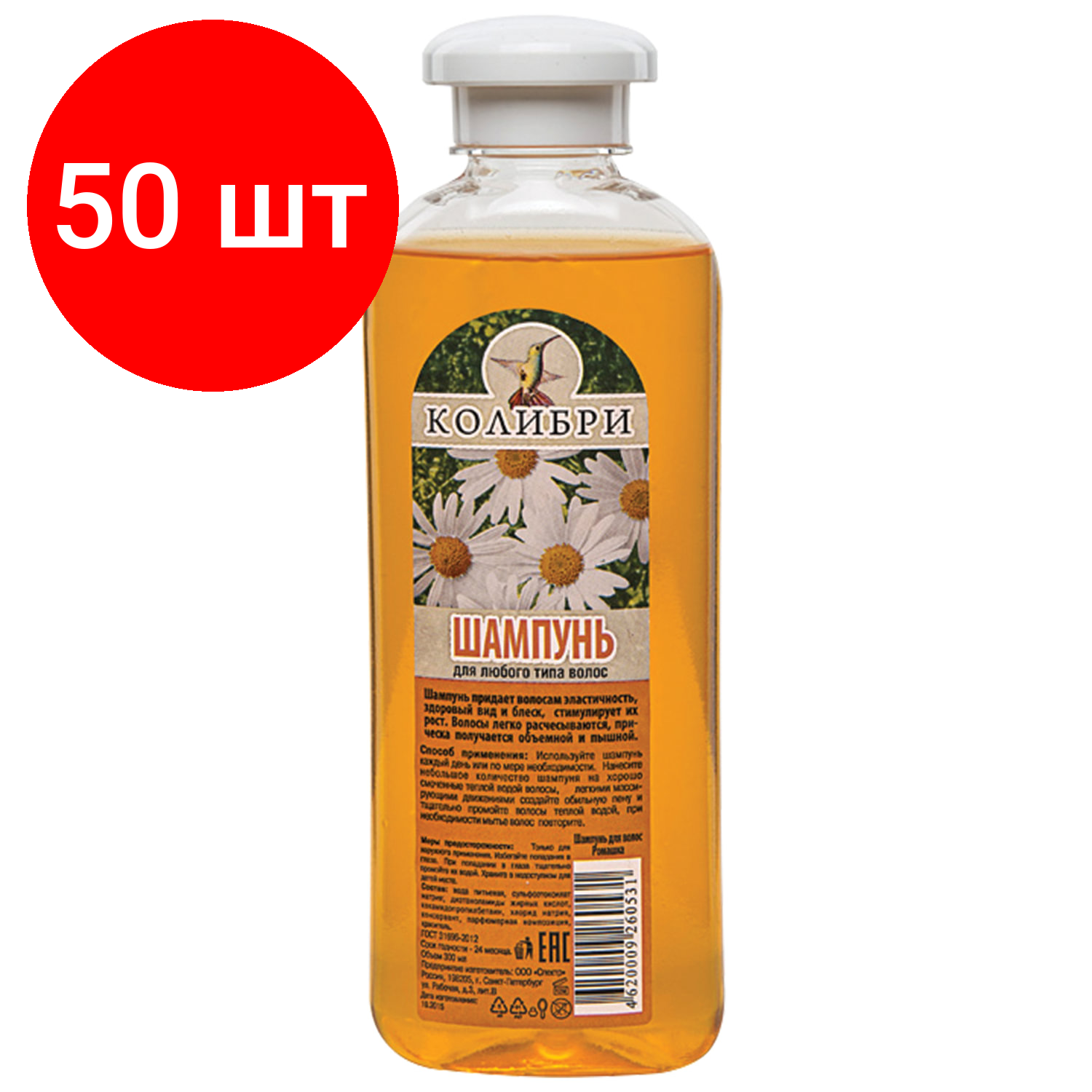 Комплект 50 шт, Шампунь 300 мл, колибри «Ромашка», для всех типов волос, КЛ-03: сравнение цен, характеристики, фото, актуальное наличие и цены.
